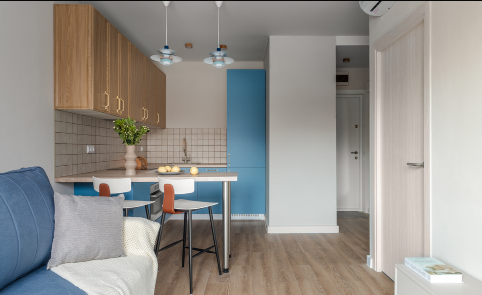 - Оборудование: кондиционер, микроволновая печь, набор посуды, плита электрическая, посудомоечная машина, стиральная машина, телевизор, холодильник, чайник